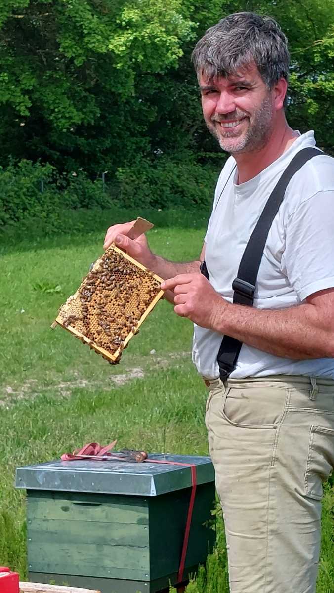 Neben der Imkerei betreibe ich einen Imkereifachhandel, in dem ich sowohl Anfänger als auch erfahrene Imkernde berate. Der Austausch auf Augenhöhe ist mir hier wichtig. Mit meiner Frau und meinen Kindern ist die Imkerei längst eine Familienangelegenheit geworden. Besonders stolz bin ich auf meine jüngste Tochter, die heute ihre eigenen Bienenvölker betreut und bereits ihren ersten eigenen Honig geerntet hat.